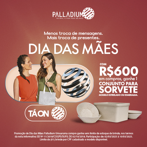 De 2 a 10 de maio, ou enquanto durarem os estoques, quem realizar compras a partir de R$600 no Palladium Umuarama poderá trocar as notas fiscais por um exclusivo conjunto para sorvete com quatro peças. Criado especialmente para a data pela Oxford, o brinde está disponível em duas elegantes versões: Estrelado e Esmeralda.